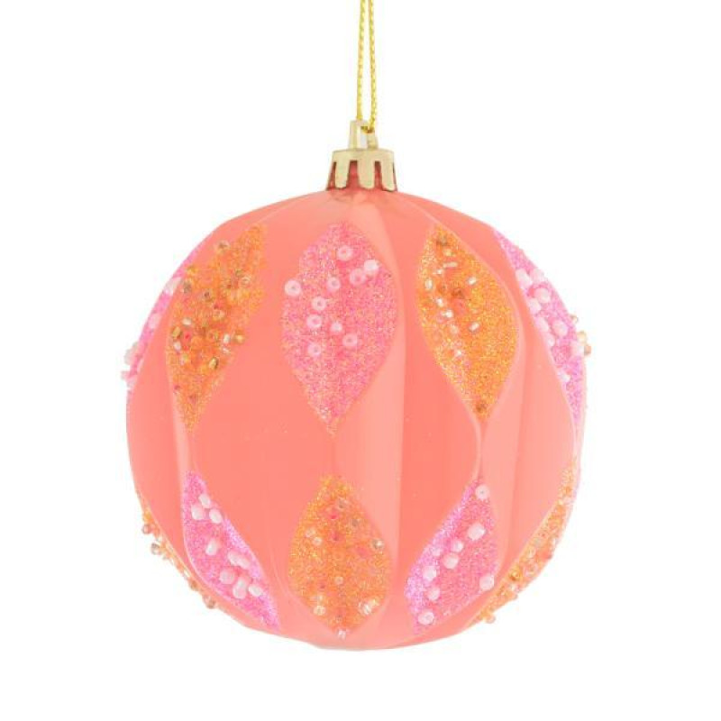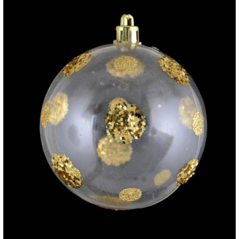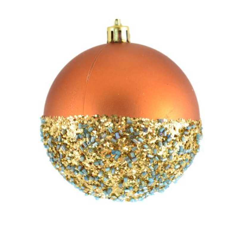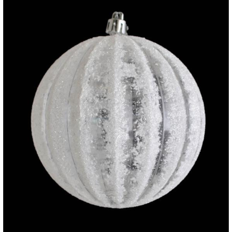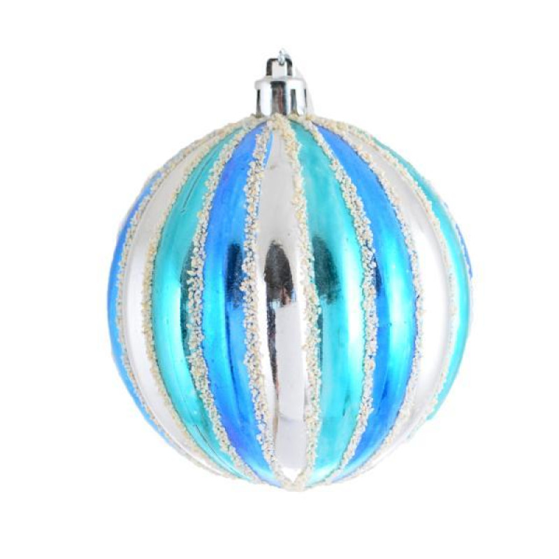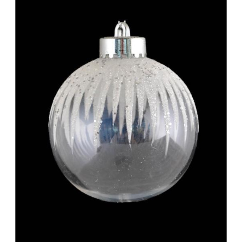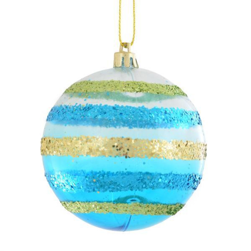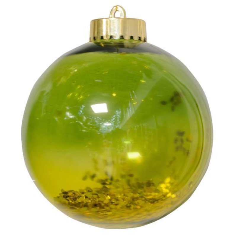 Яскрава куля із блискучим наповненням використовується для прикраси новорічної ялини, хвойних гілок та декоративних композицій. Матеріал: пластик. Діаметр: 10 см...