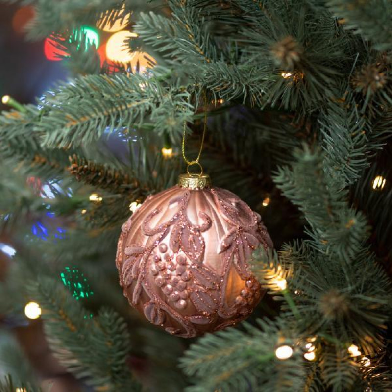 Новорічна куля Novogod‘ko, скло, 10 см, св.рожева, матова, орнамент (973858) арт: 973858-tp