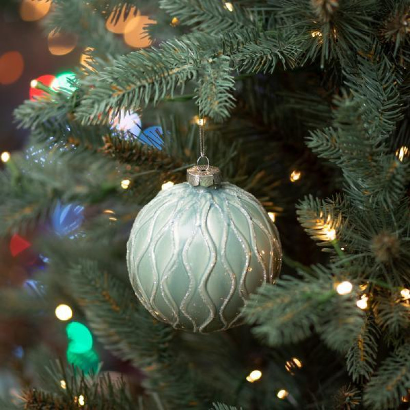 Новорічна куля Novogod‘ko, скло, 10 см, св.зелена, глянець, орнамент (973854) арт: 973854-tp