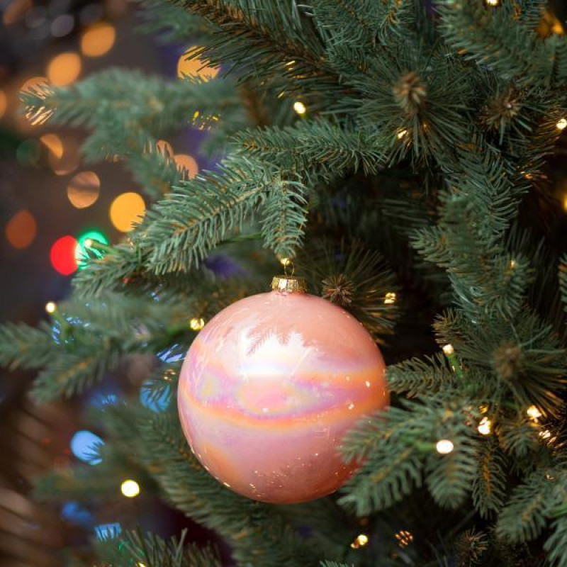 Новорічна куля Novogod‘ko, скло, 12 см, світло-рожева, глянець, мармур (973828) арт: 973828-tp