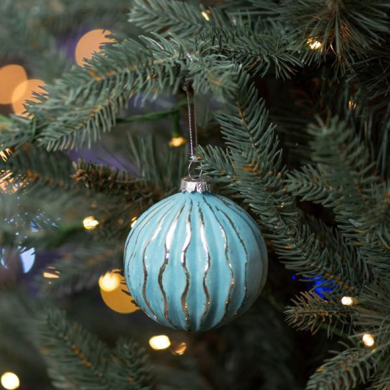 Новорічна куля Novogod‘ko, скло, 8 см, світло-блакитна, матова, орнамент (973841) арт: 973841-tp