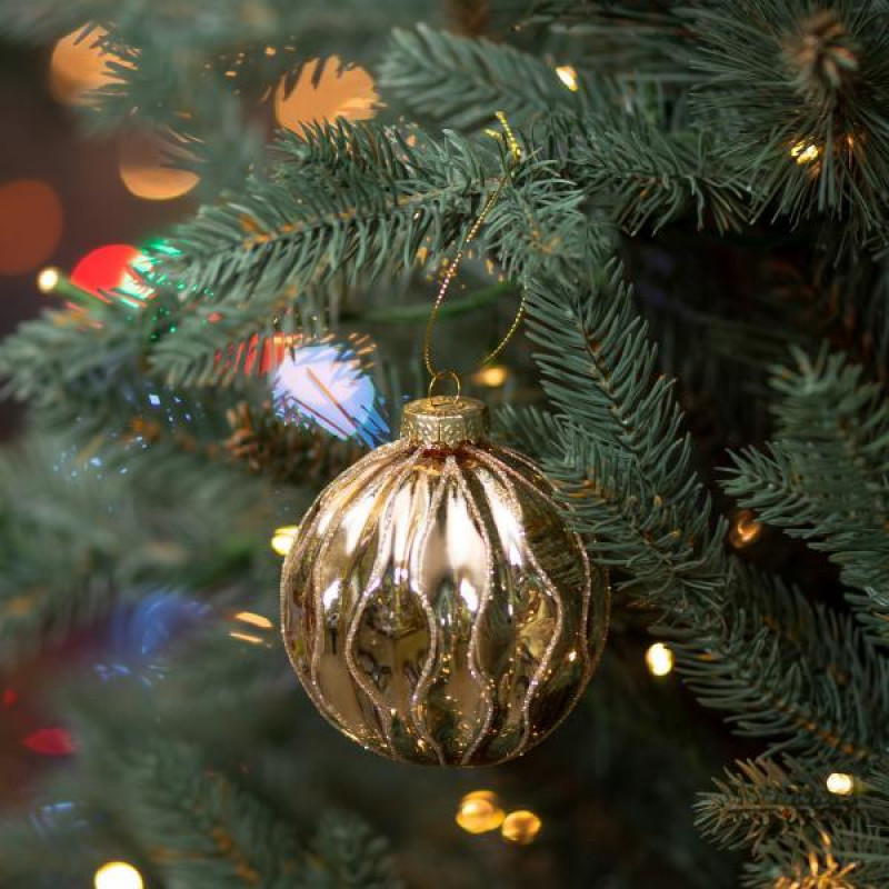 Новорічна куля Novogod‘ko, скло, 8 см, золото, глянець, орнамент (973834) арт: 973834-tp