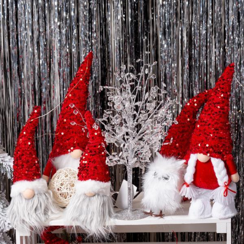 Новорічна м‘яка іграшка Novogod‘ko «Гном», червона паєтка, 36 см, LED (973720) арт: 973720-tp