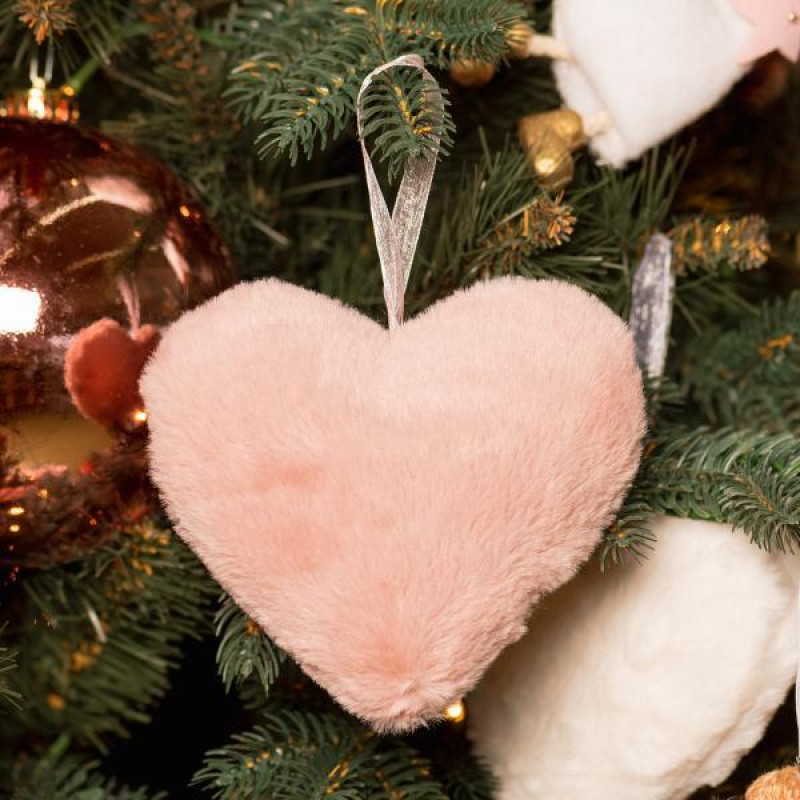 Новорічна пухнаста прикраса у формі серця стане неповторним декором для ялинки та подарує атмосферу затишку та тепла у будинку. Прекрасно виглядає у поєднанні з іншими прикрасами "м'якою" серії. Крім того, таке серце може стати гарним подарунком для близьких та рідних людей. Розмір: 15 см. Склад: пінопласт, штучне хутро. Упаковка: полібіг.