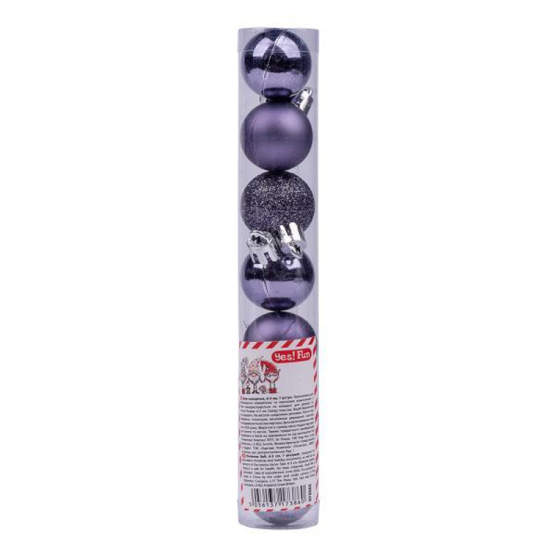 Набір ялинкових кульок Yes! Fun використовується для прикрашання новорічної ялинки, хвойних гілок і декоративних композицій. Складається із перламутрового, матового і глітерного покриттів куль насиченого чорно-фіолетового кольору. Матеріал: пластик. Кількість в упаковці: 7 шт. Діаметр: 3 см.