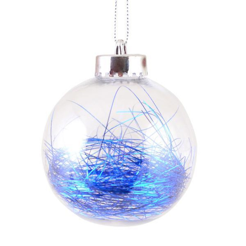 Напівпрозора куля з фольгованим наповненням використовується для прикраси новорічної ялини, хвойних гілок та декоративних композицій. Матеріал: пластик. Діаметр: 8 см.
