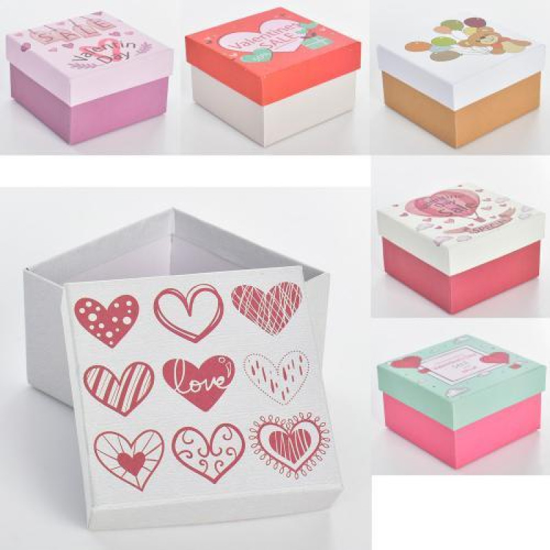 Скринька картон, ЦІНА ЗА УП. 6ШТ, 6 видів (серце, 1 вид * ведмедик), 9 * 9 * 5см..
