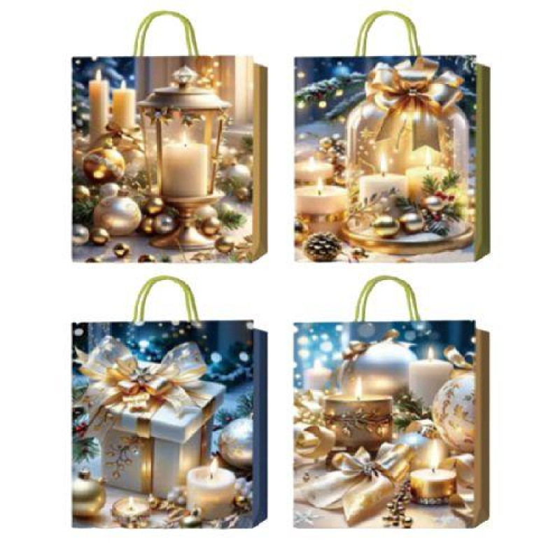 Пакет новорічний паперовий S "Christmas candles" 18*23*8см, ЦІНА ЗА УП. 12ШТ арт: R33003-S