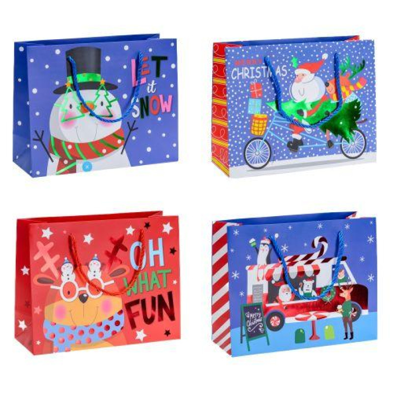 Пакет новорічний паперовий S "Let it snow" 19.5*24.5*9.9см, ЦІНА ЗА УП. 12ШТ арт: R33012-S