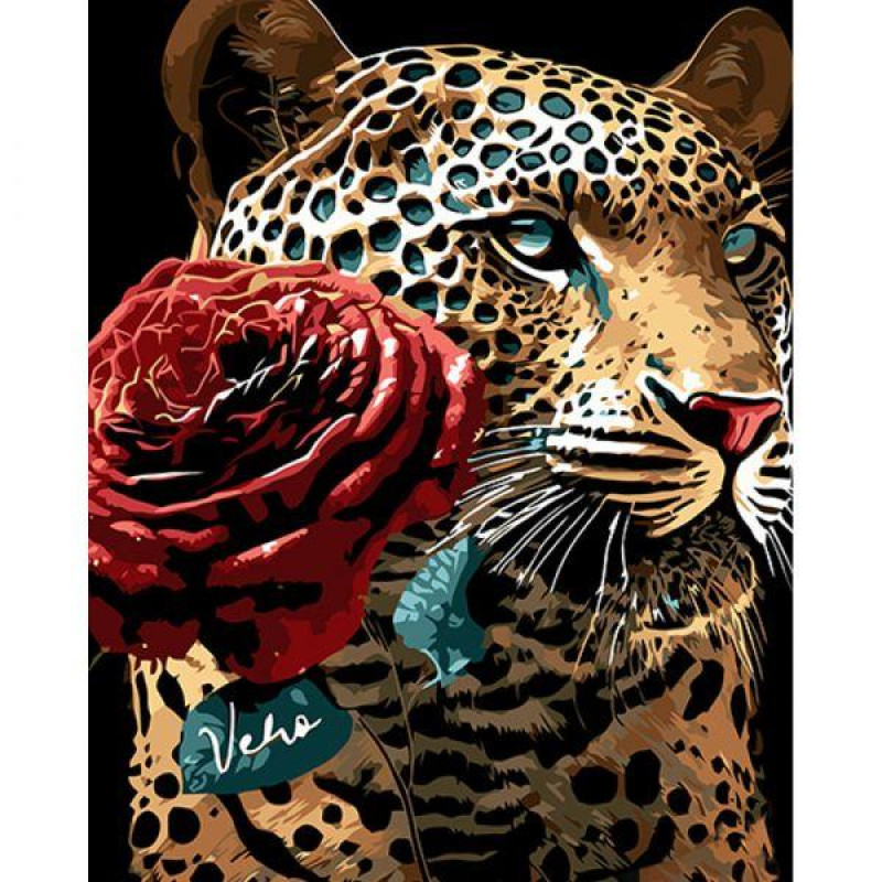 Картина за номерами Тварини. Романтичний гепард, чорний фон, 40х50 см, термопакет, Strateg (AH1031-mt)