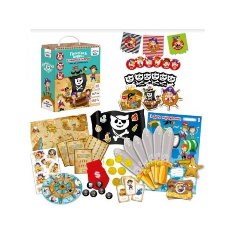 Party Box «Піратська вечірка» — це готовий сценарій незабутнього дитячого свята у форматі захопливого квесту з пошуку скарбів тривалістю близько 90 хвилин. Діти поринуть у світ морських пригод, таємничих карт і піратських загадок, виконуючи творчі, логічні та рухливі завдання.Кожен етап гри продуман..
