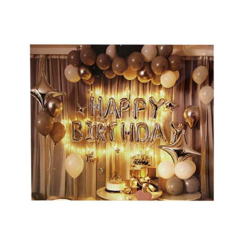 Набір декору до дня народження, срібний дизайн із золотом (банер, кульки) 34*26см