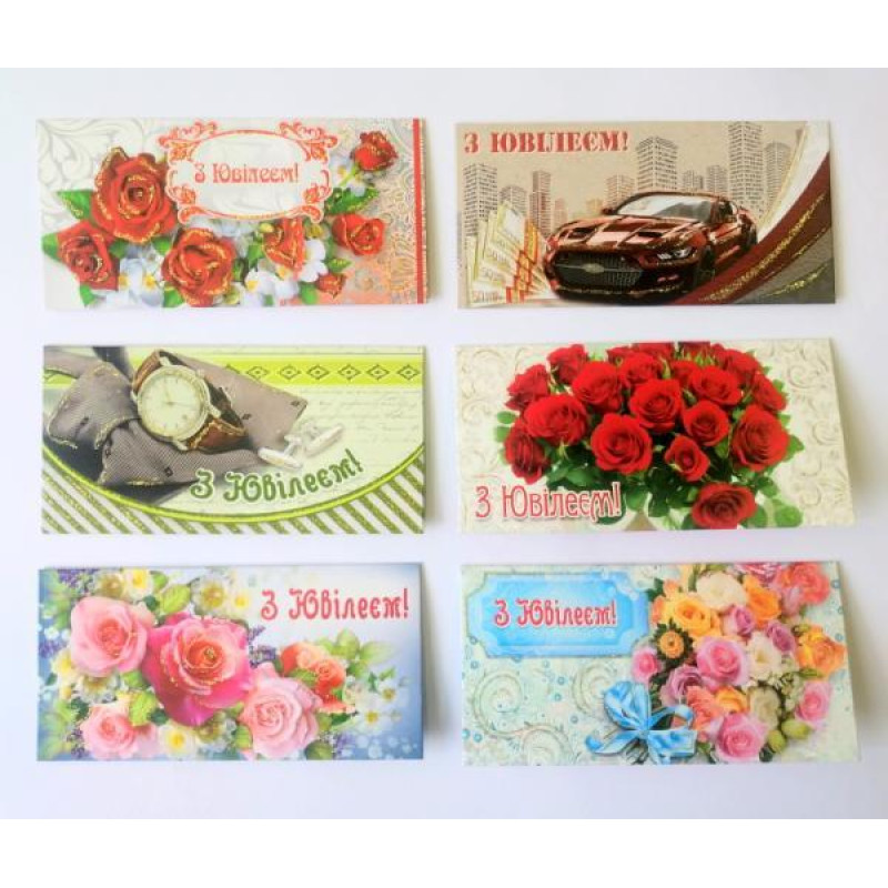 Листівка-конверт для грошей "Etude line" Ювілей, мікс видів, 17*8,5см