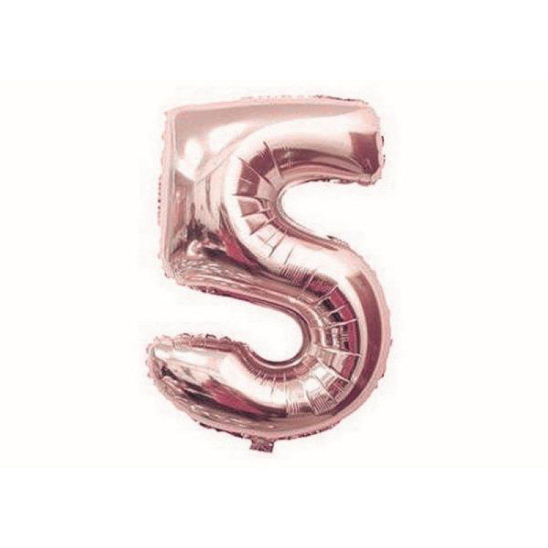 Кулька цифри в індивіді упаковці, цифра 5, рожеве золото, 75см, в пак. 20*14см, арт: 9537rg-5