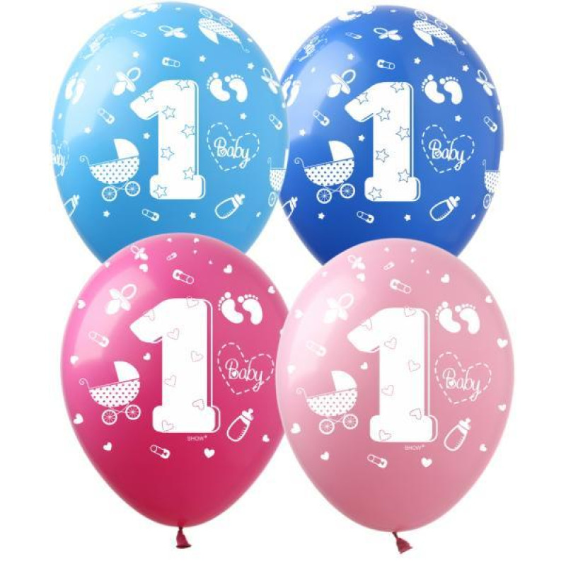 Кульки 12 "1 рік хлопчик" (5 ст.) ЦІНА ЗА УП. 50ШТ, пак. 20*15см