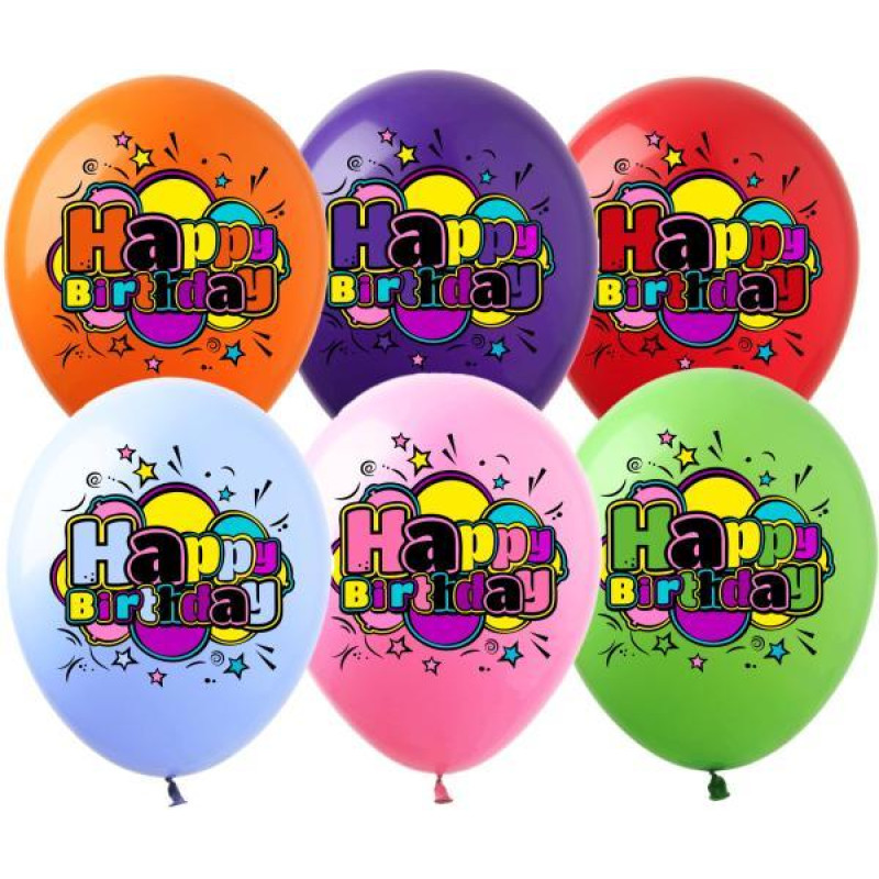 Кульки 12" "Happy Birthday Фарби" ЦІНА ЗА УП. 50ШТ, пак. 20*15см, арт: SDR-130b