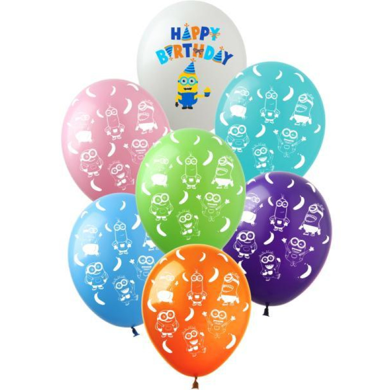 Кульки 12" "Happy Birthday Посіпаки" ЦІНА ЗА УП. 50ШТ., пак. 20*15см
