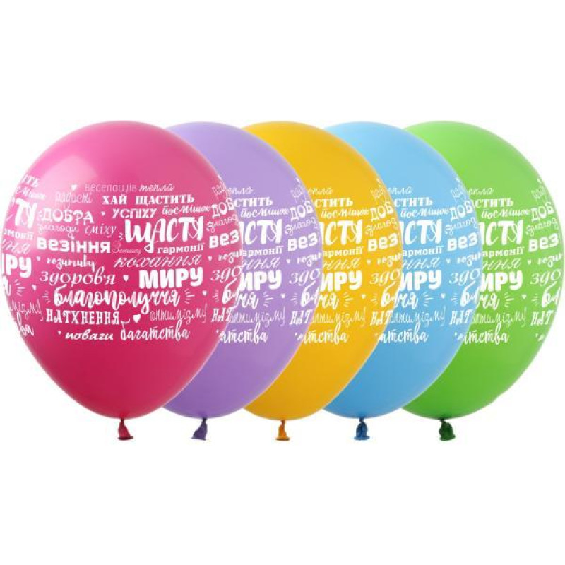 Кульки 12" "Побажання" асорті (4 ст) ЦІНА ЗА УП. 50ШТ, пак. 20*15см