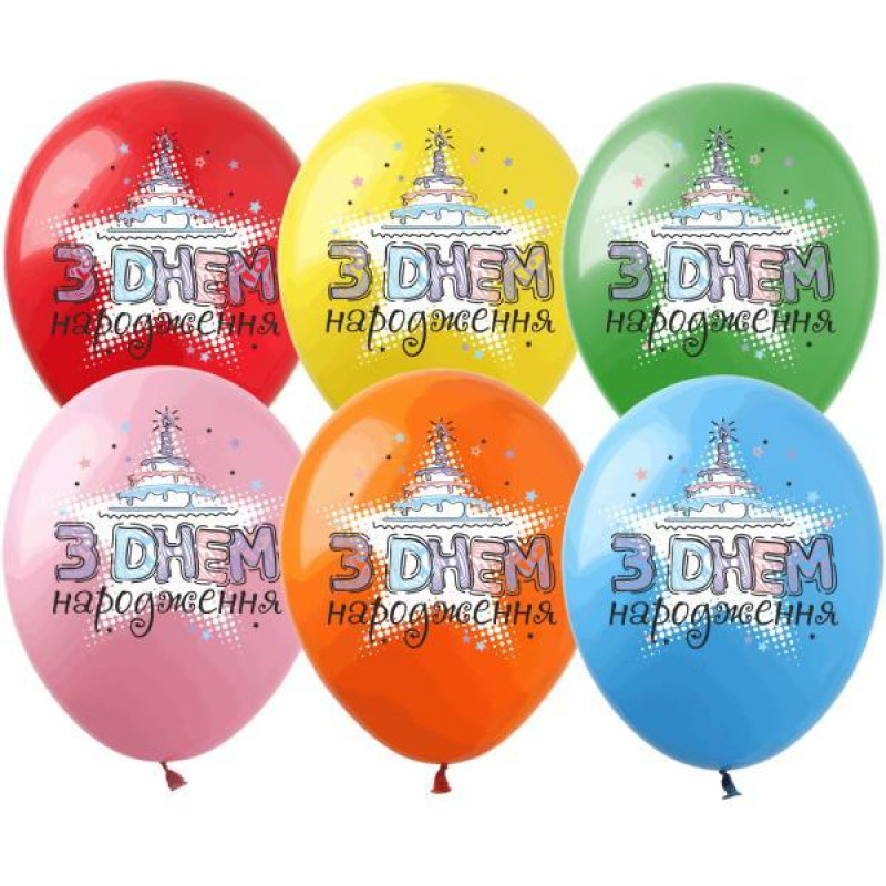 Кульки 12" З днем народження (1 ст.5 кол.) ЦІНА ЗА УП. 50ШТ