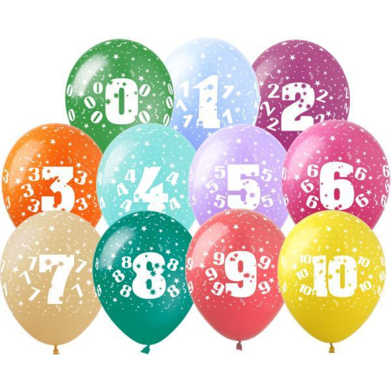 Кульки 12" - Цифри - "0-10" асорті (5 ст.) ЦІНА ЗА УП. 50ШТ, арт: SDR-16В